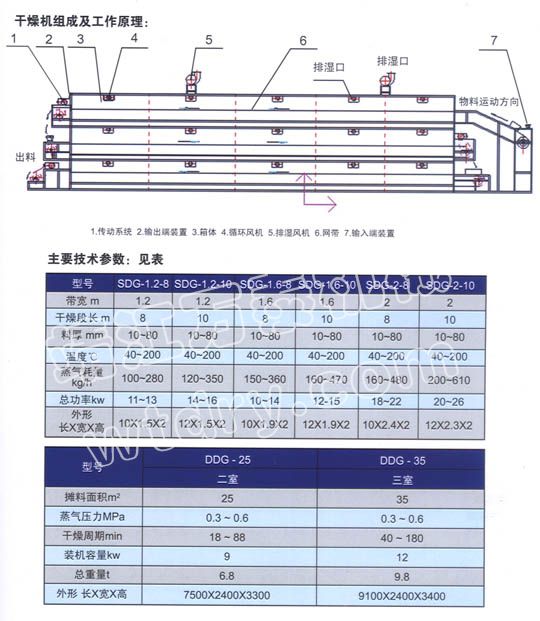 (2)帶干機不僅供物料干燥,有時還可對物料進行焙烤、燒成或熟化處理操作。